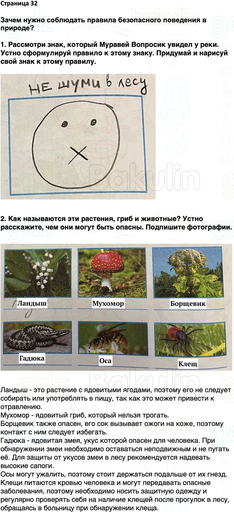 Добавить в мои закладкиДля вас мы подготовили бесплатное решение с подробным пояснением 32 из книги Рабочая тетрадь по окружающему миру 1 класс Плешаков ФГОС часть 1, 2 Школа России