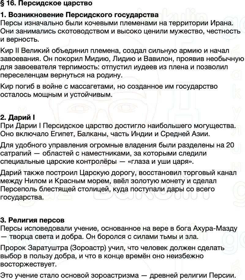 Решение № 16 Краткое содержание История древнего мира 5 класс Мединский, Чубарьян