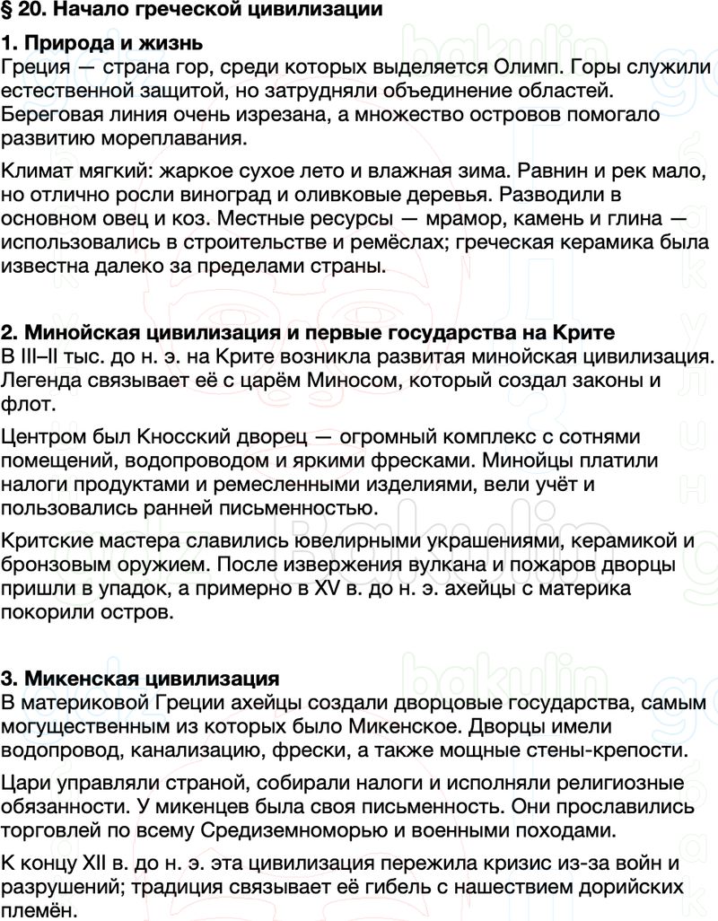 Решение № 20 Краткое содержание История древнего мира 5 класс Мединский, Чубарьян