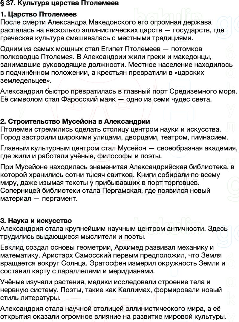Решение № 37 Краткое содержание История древнего мира 5 класс Мединский, Чубарьян