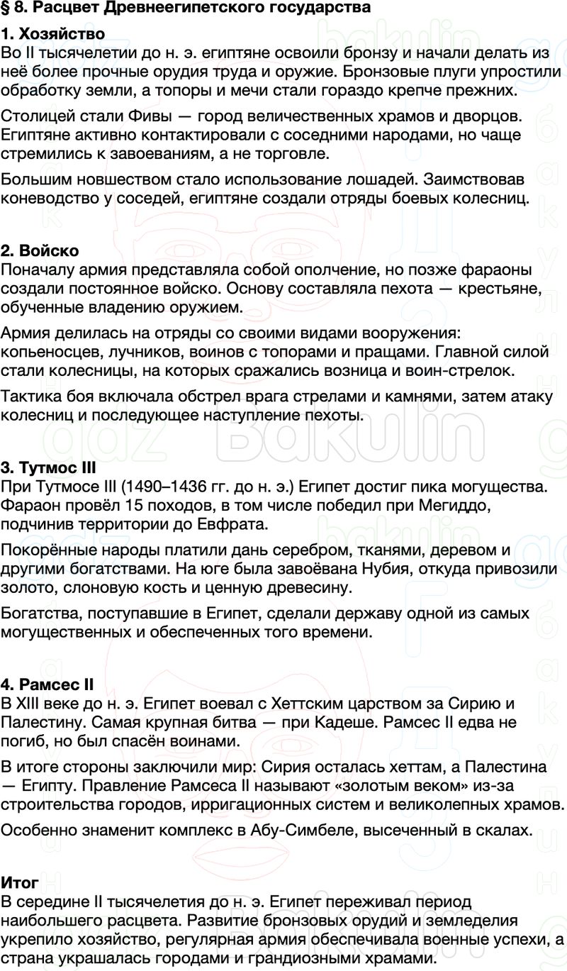 Решение № 8 Краткое содержание История древнего мира 5 класс Мединский, Чубарьян