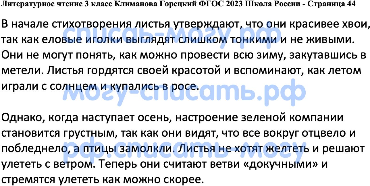 44 Ответы учебник литературное чтение Климанова 3 класс