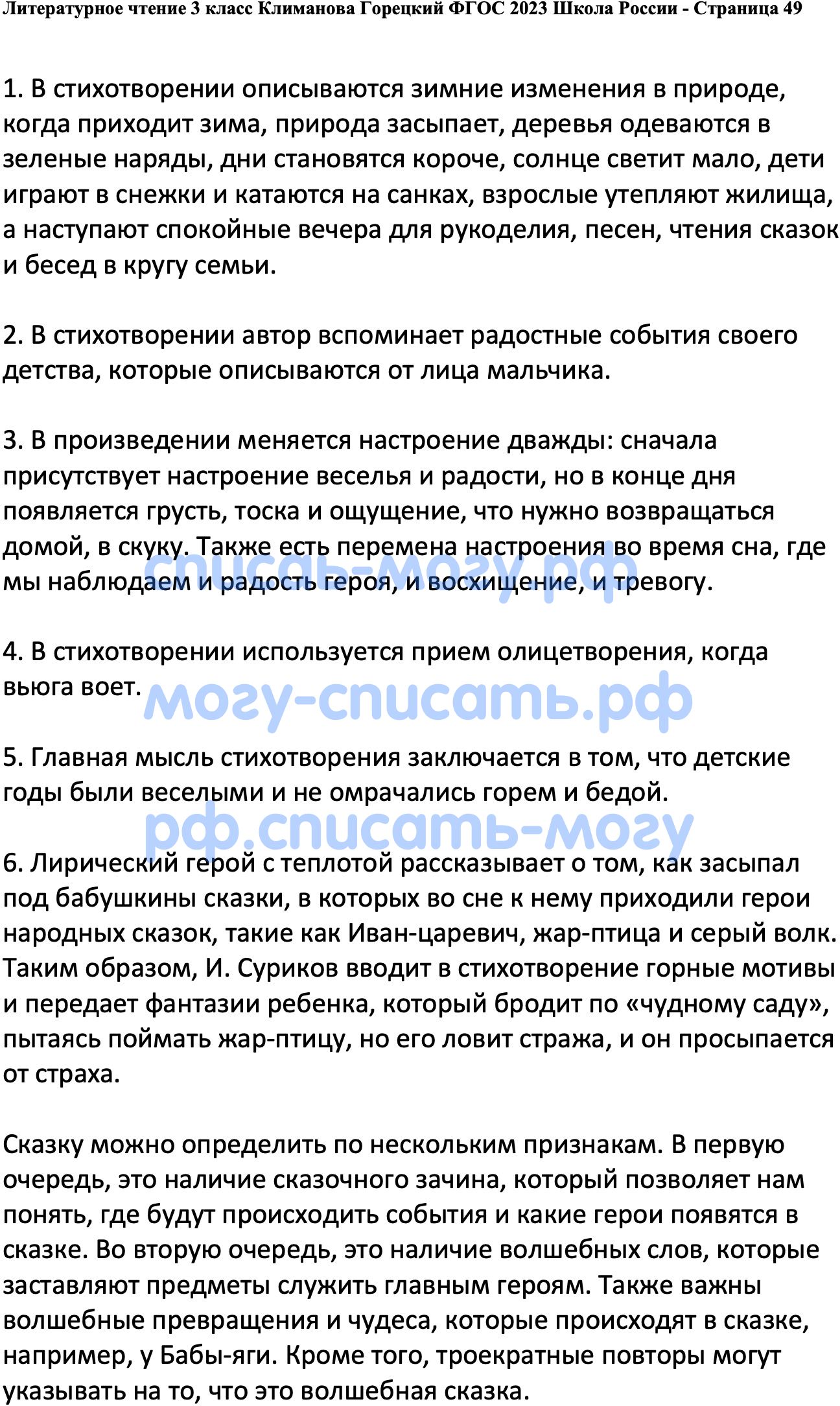 49 Ответы учебник литературное чтение Климанова 3 класс