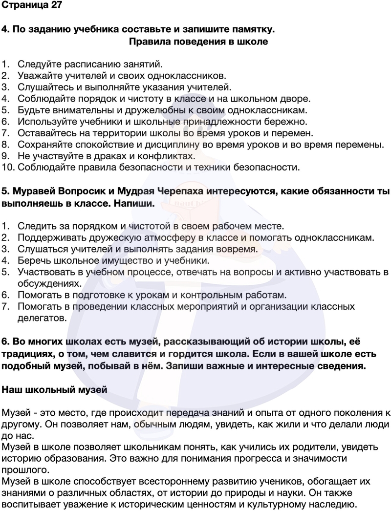 Для вас мы подготовили бесплатное решение с подробным пояснением 27 из книги Рабочая тетрадь по окружающему миру 2 класс Плешаков ФГОС часть 1, 2 Школа России