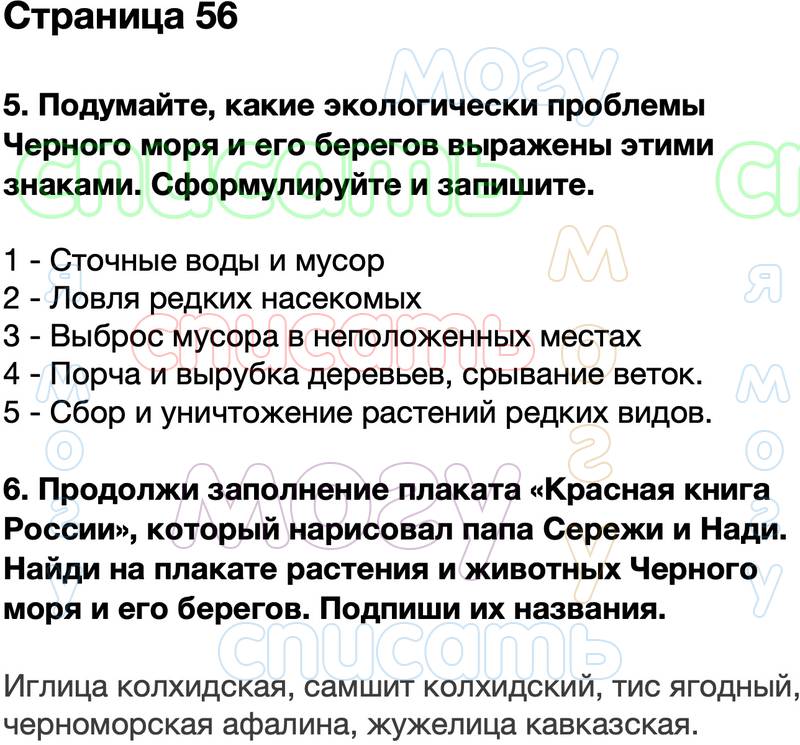 Добавить в мои закладкиДля вас мы подготовили бесплатное решение с подробным пояснением 56 из книги Рабочая тетрадь по окружающему миру 4 класс Плешаков ФГОС часть 1, 2 Школа России
