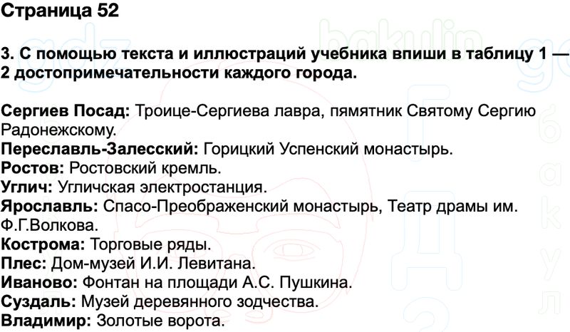 Добавить в мои закладкиДля вас мы подготовили бесплатное решение с подробным пояснением 52 из книги ГДЗ рабочая тетрадь окружающий мир 3 класс Плешаков ФГОС часть 1, 2 Школа России