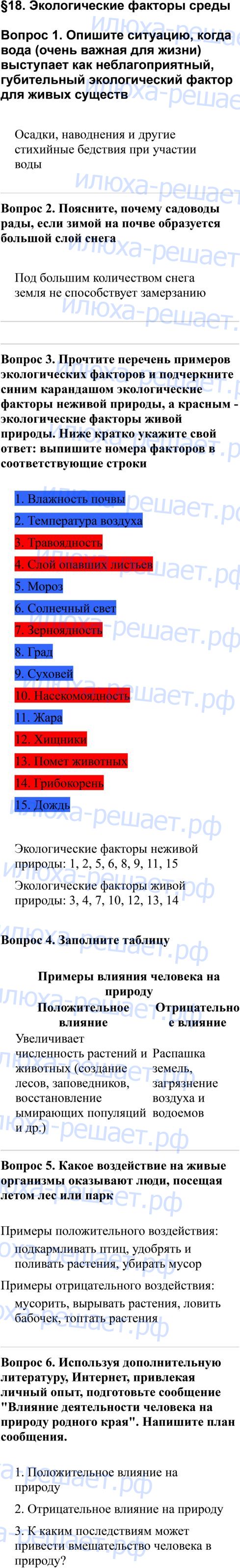 Добавить в мои закладкиДля вас мы подготовили бесплатное решение с подробным пояснением № §18 из книги Рабочая тетрадь по биологии 5 класс Корнилова