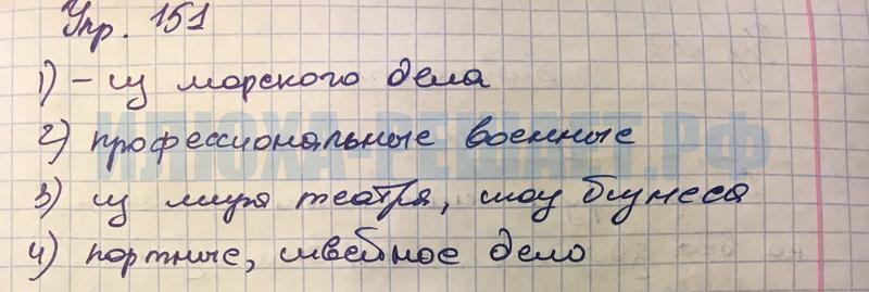 Решение № 151 Русский язык за 6 класс Ладыженская, Баранов. Учебник в 2-х частях ФГОС (к новому и старому изданию)