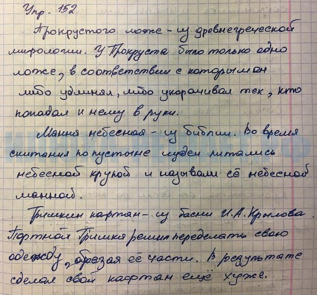 Решение № 152 Русский язык за 6 класс Ладыженская, Баранов. Учебник в 2-х частях ФГОС (к новому и старому изданию)