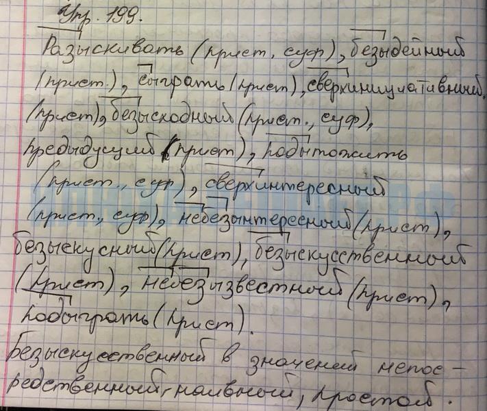 Решение № 199 Русский язык за 6 класс Ладыженская, Баранов. Учебник в 2-х частях ФГОС (к новому и старому изданию)