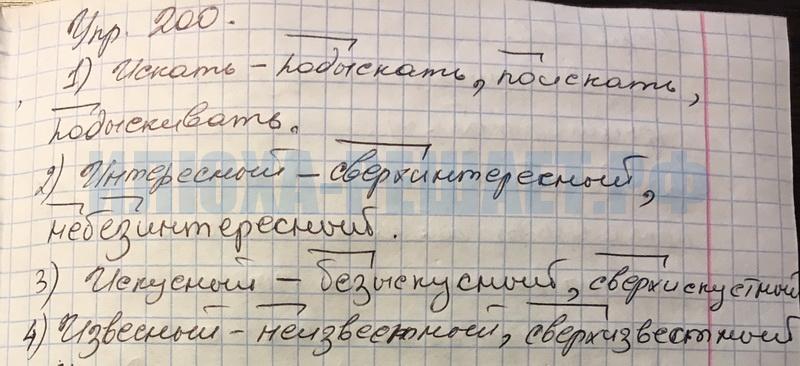 Решение № 200 Русский язык за 6 класс Ладыженская, Баранов. Учебник в 2-х частях ФГОС (к новому и старому изданию)