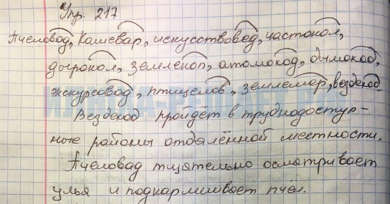Решение № 217 Русский язык за 6 класс Ладыженская, Баранов. Учебник в 2-х частях ФГОС (к новому и старому изданию)