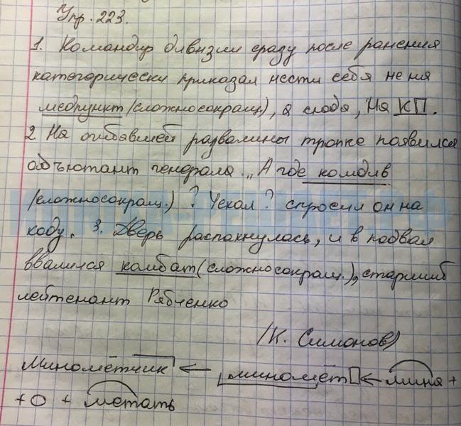 Решение № 223 Русский язык за 6 класс Ладыженская, Баранов. Учебник в 2-х частях ФГОС (к новому и старому изданию)