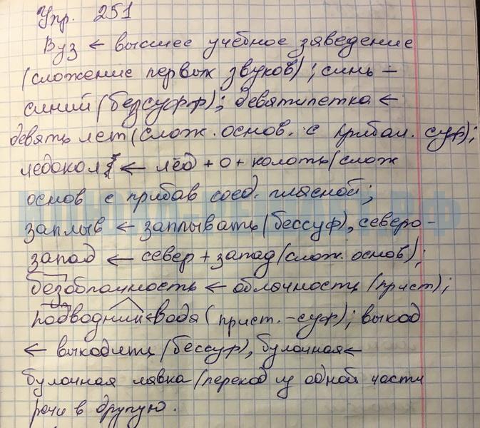 Решение № 251 Русский язык за 6 класс Ладыженская, Баранов. Учебник в 2-х частях ФГОС (к новому и старому изданию)