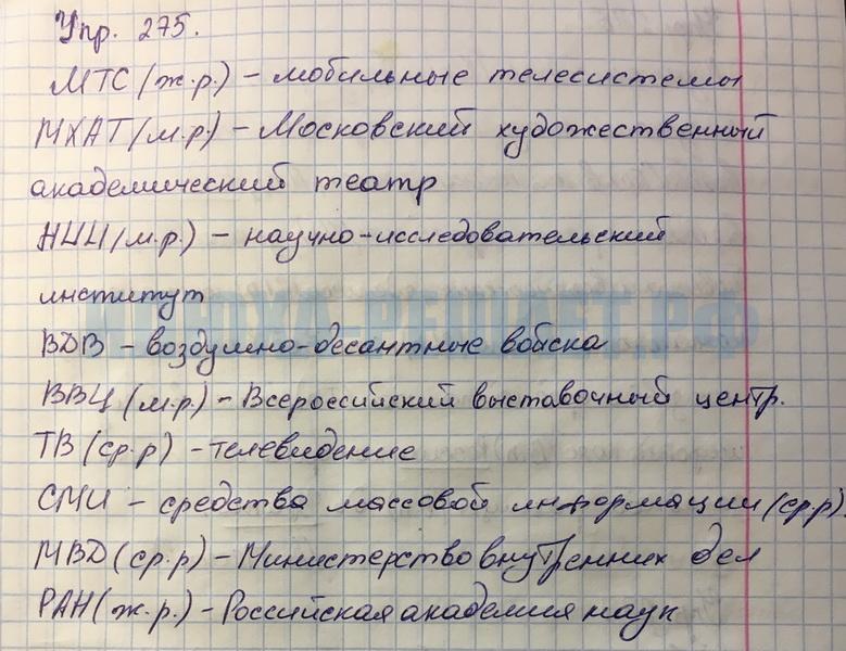 Решение № 275 Русский язык за 6 класс Ладыженская, Баранов. Учебник в 2-х частях ФГОС (к новому и старому изданию)