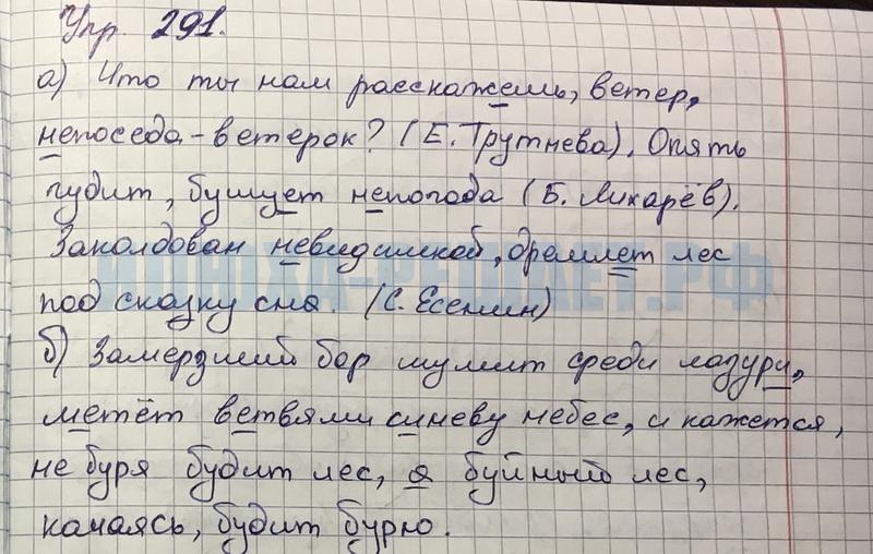 Решение № 291 Русский язык за 6 класс Ладыженская, Баранов. Учебник в 2-х частях ФГОС (к новому и старому изданию)