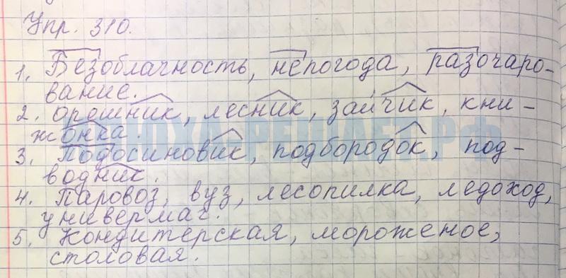 Решение № 310 Русский язык за 6 класс Ладыженская, Баранов. Учебник в 2-х частях ФГОС (к новому и старому изданию)
