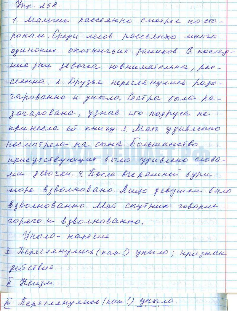 Решение 258 Русский язык 7 класс Баранов, Ладыженская, Тростенцова к новому и старому учебнику