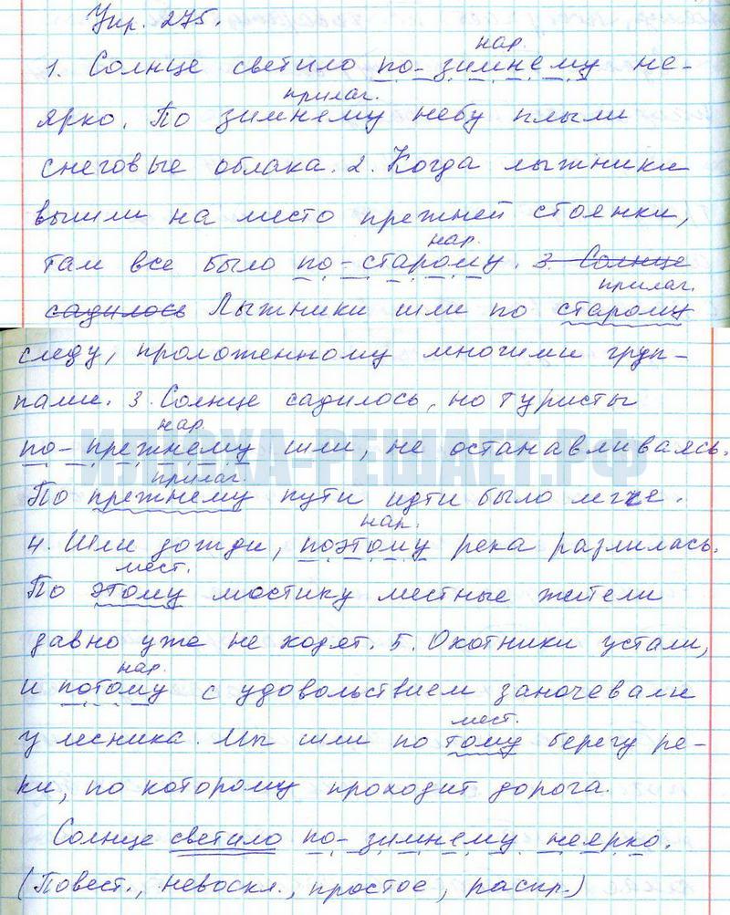 Решение 275 Русский язык 7 класс Баранов, Ладыженская, Тростенцова к новому и старому учебнику