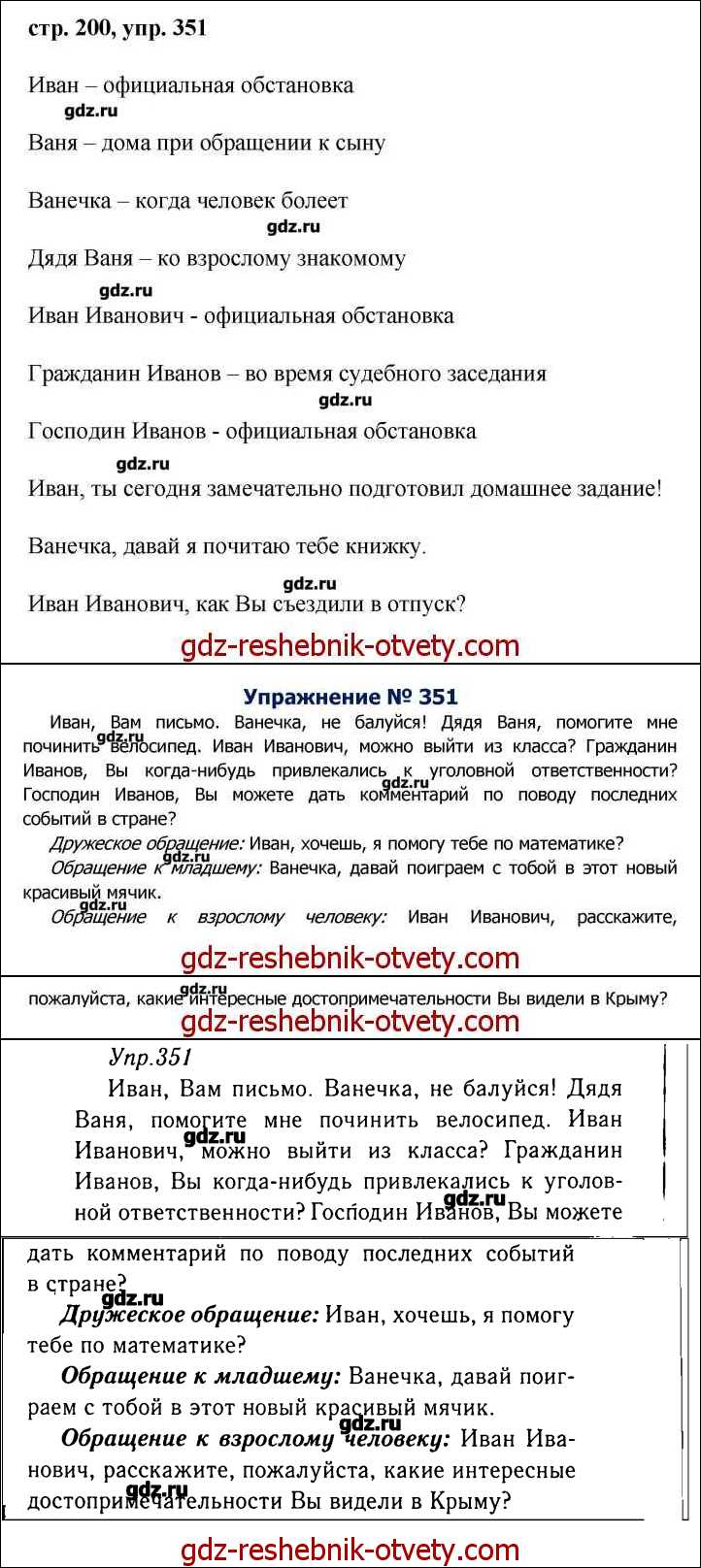 Решение № 351 Русский язык 8 класс Ладыженская, Тростенцова