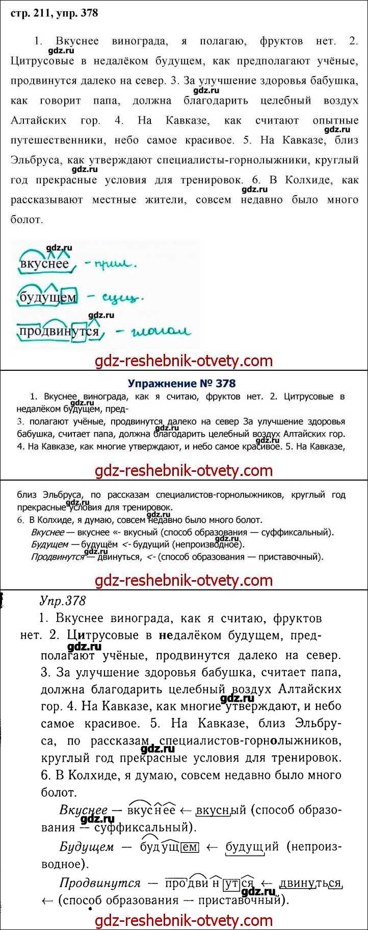 Решение № 378 Русский язык 8 класс Ладыженская, Тростенцова
