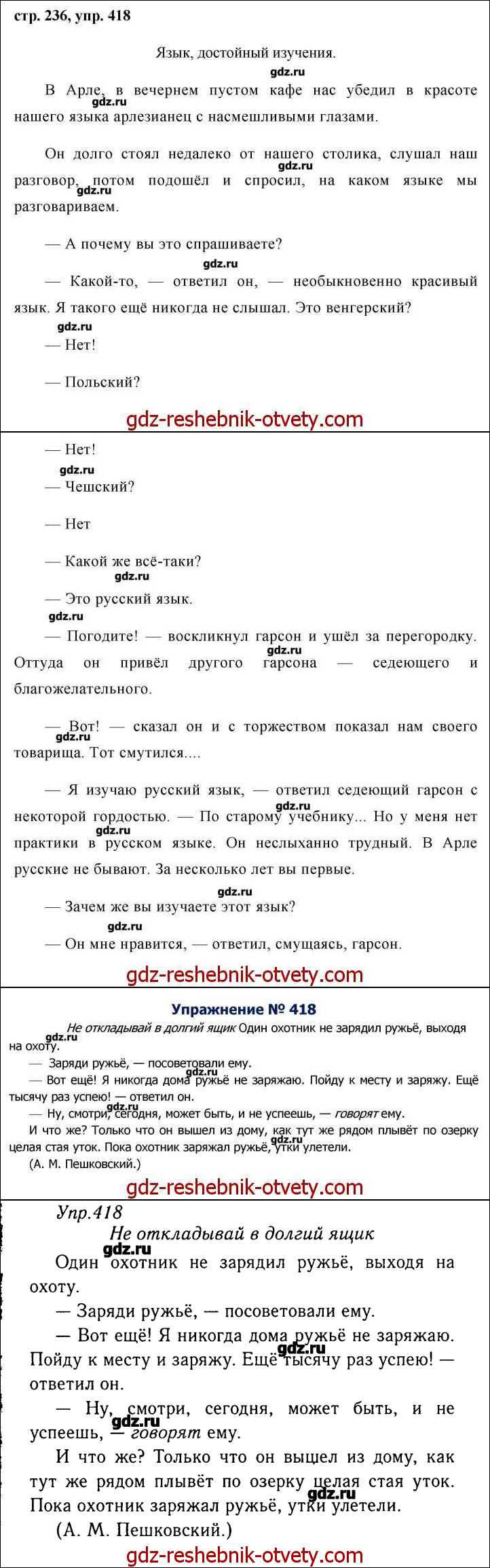 Решение № 418 Русский язык 8 класс Ладыженская, Тростенцова