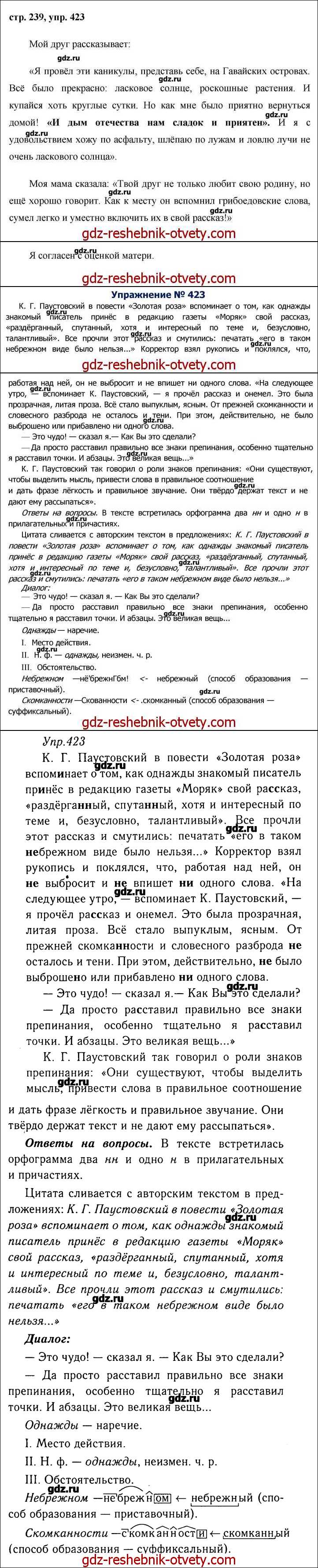 Решение № 423 Русский язык 8 класс Ладыженская, Тростенцова