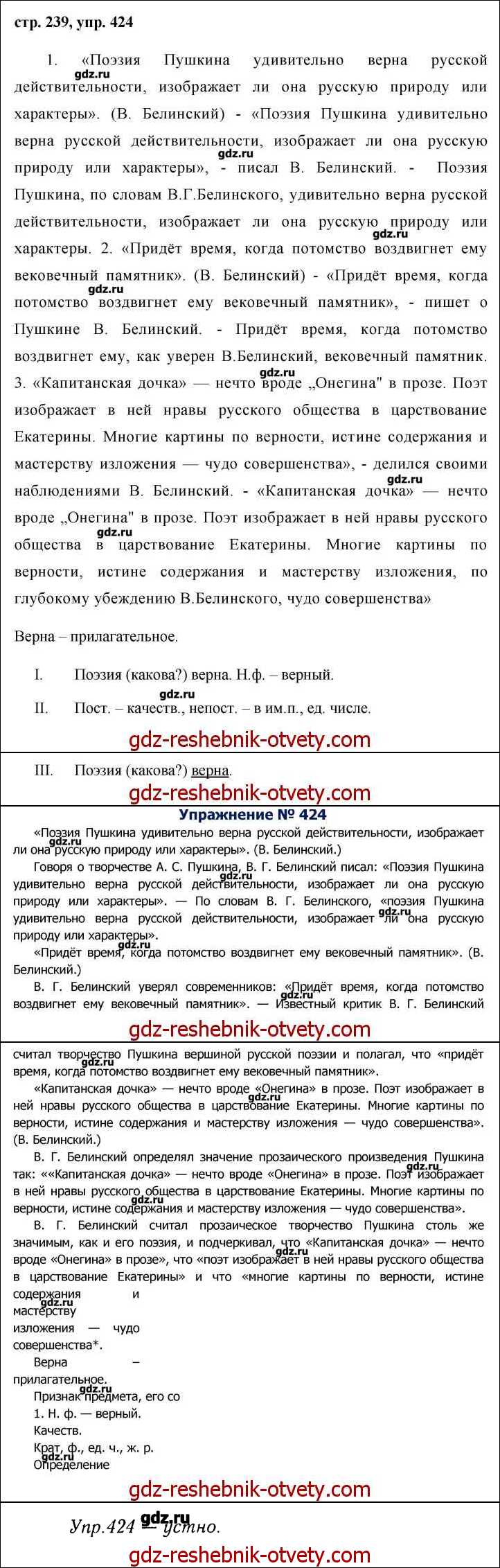Решение № 424 Русский язык 8 класс Ладыженская, Тростенцова