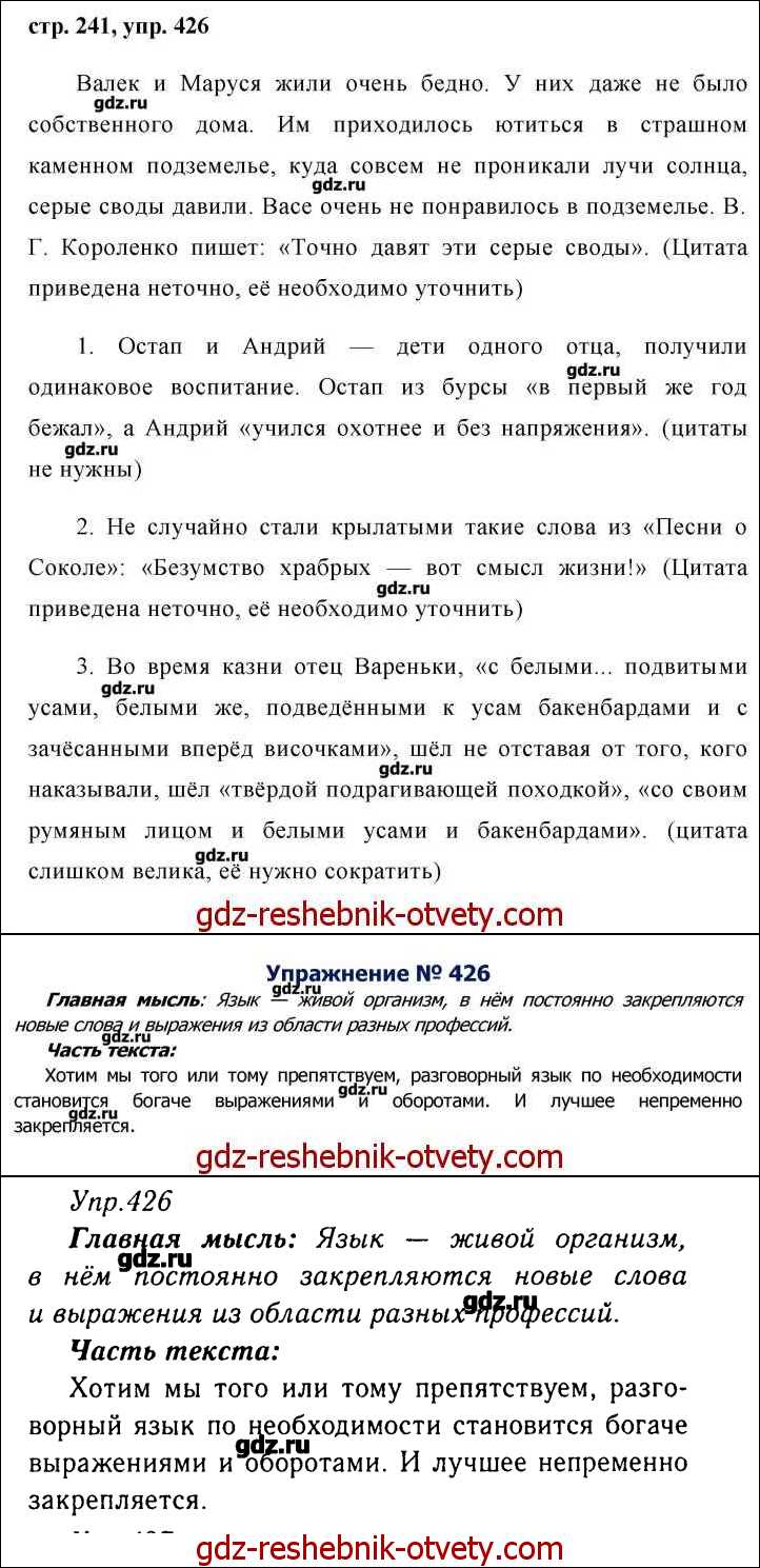Решение № 426 Русский язык 8 класс Ладыженская, Тростенцова