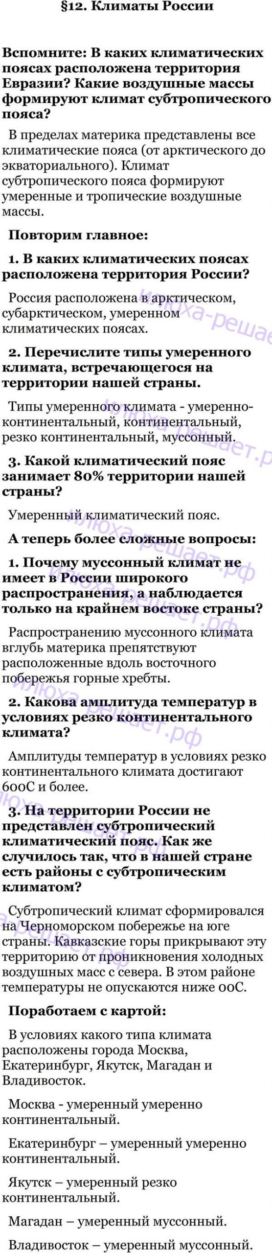 Решение № §12 Учебник по географии 8 класс Домогацких, Алексеевский Русское слово 2016