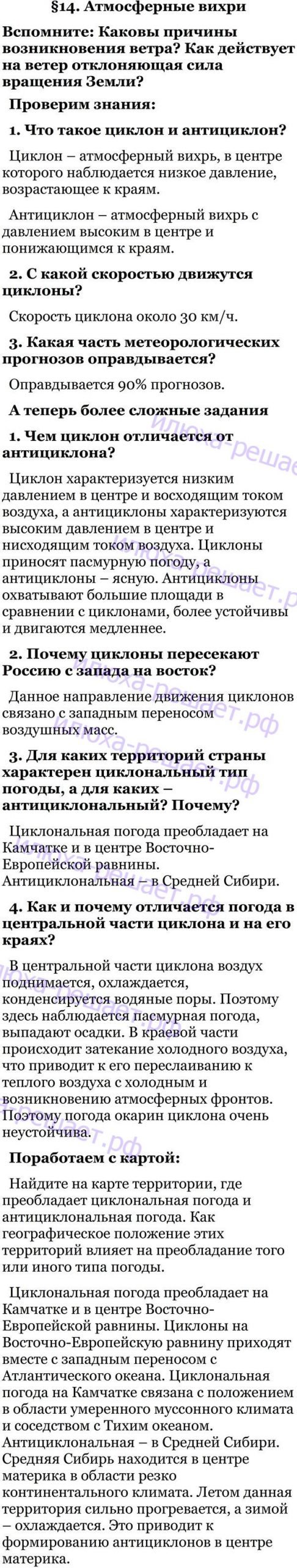 Решение № §14 Учебник по географии 8 класс Домогацких, Алексеевский Русское слово 2016