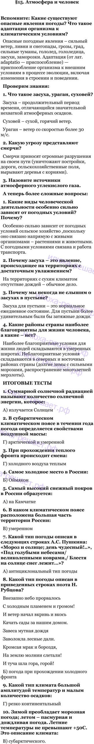 Решение № §15 Учебник по географии 8 класс Домогацких, Алексеевский Русское слово 2016