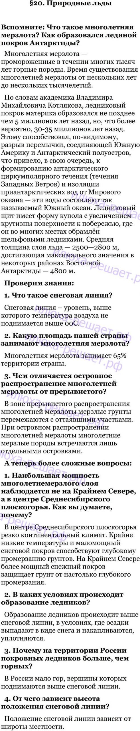 Решение № §20 Учебник по географии 8 класс Домогацких, Алексеевский Русское слово 2016