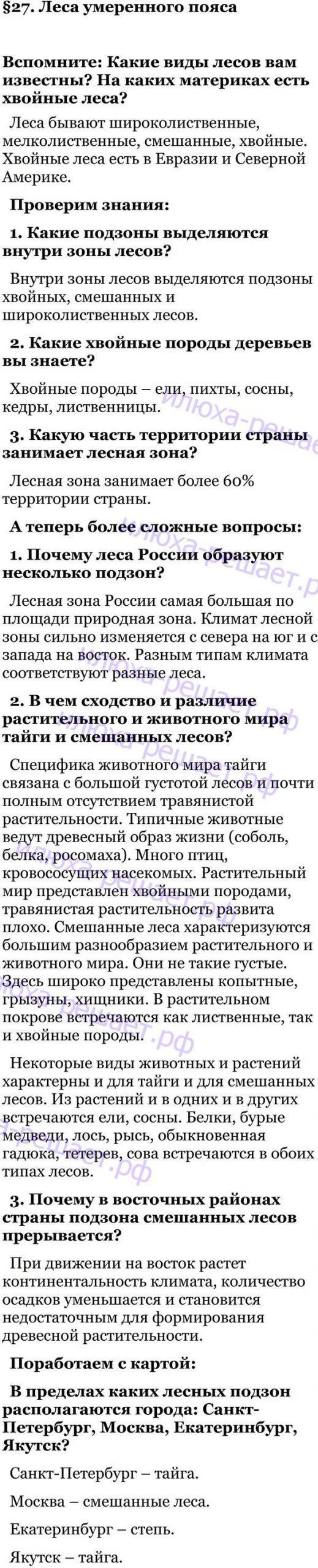 Решение № §27 Учебник по географии 8 класс Домогацких, Алексеевский Русское слово 2016