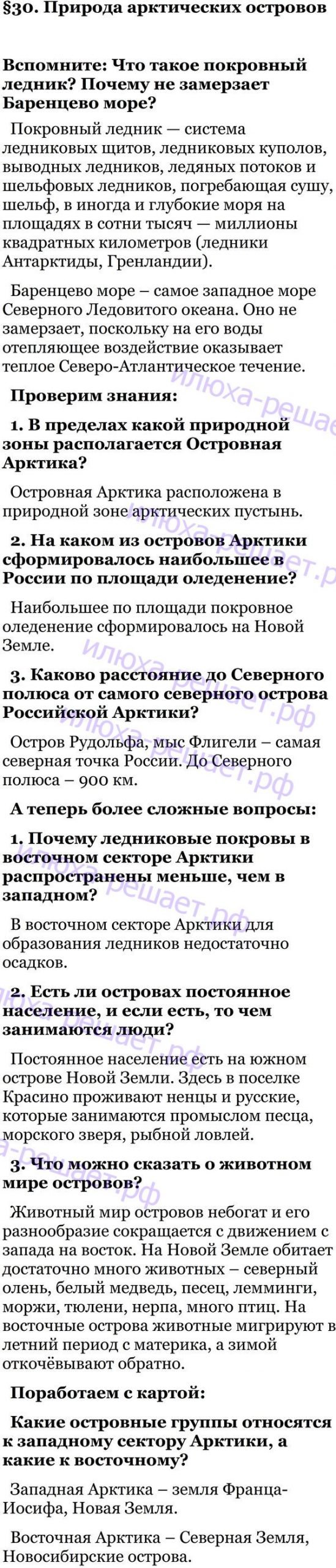 Решение № §30 Учебник по географии 8 класс Домогацких, Алексеевский Русское слово 2016