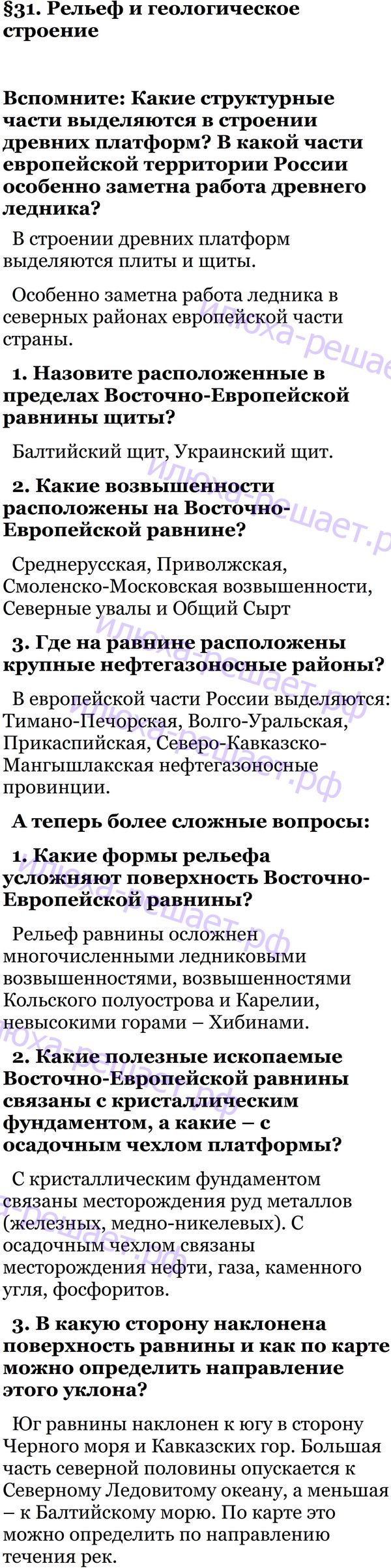 Решение № §31 Учебник по географии 8 класс Домогацких, Алексеевский Русское слово 2016